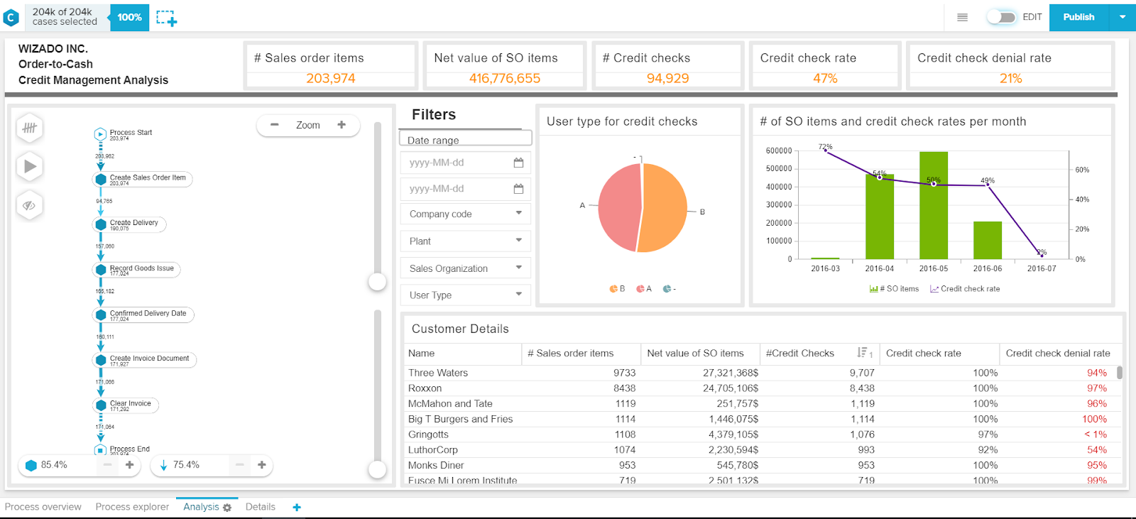 In this challenge, I used the Celonis process mining tool to deeply analyse O2C credit management data and create an interative dashboard
