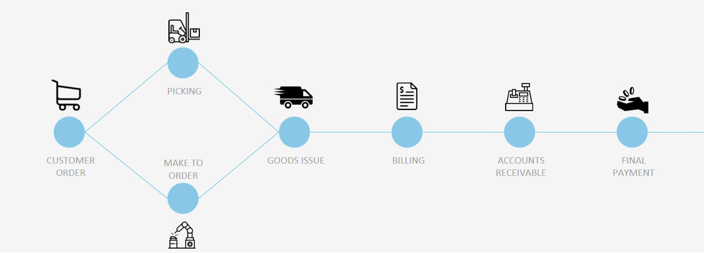 business processes behind the fulfillment of a customer order end to end. It pertains to B2B as well as to B2C sales.